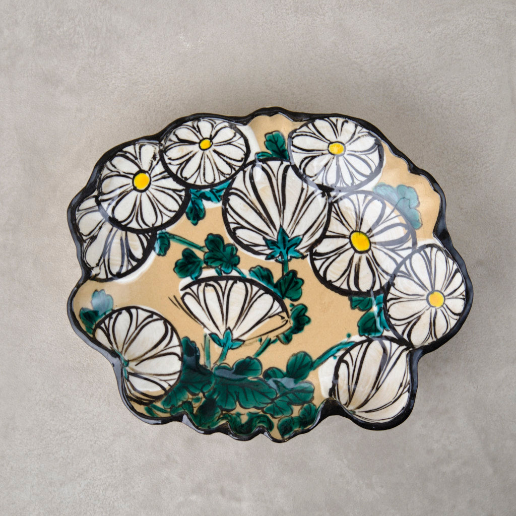 また、菊の花が重なり合うように配されていることが、器全体に伸びやかなリズムを生んでいるようです。