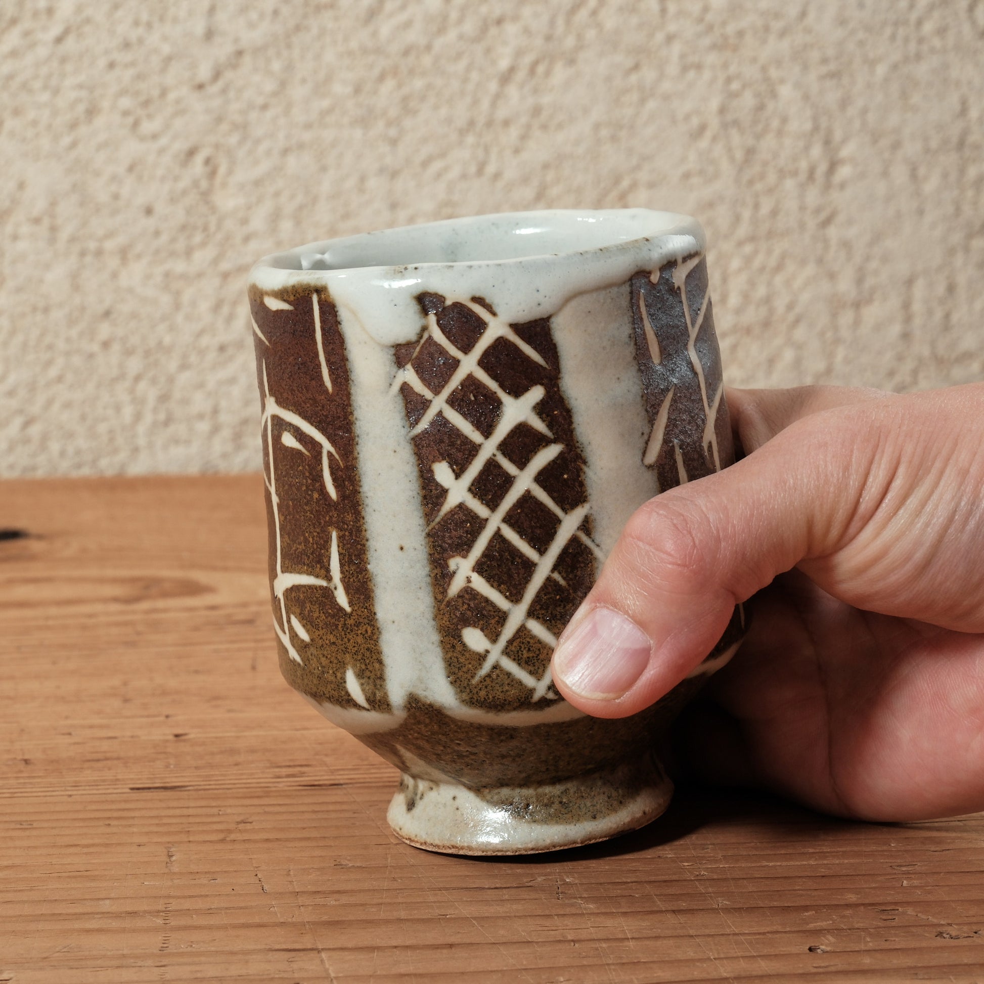 益子の陶芸家・松原直之さんによる、鉄砂絵の湯呑。(1点物)