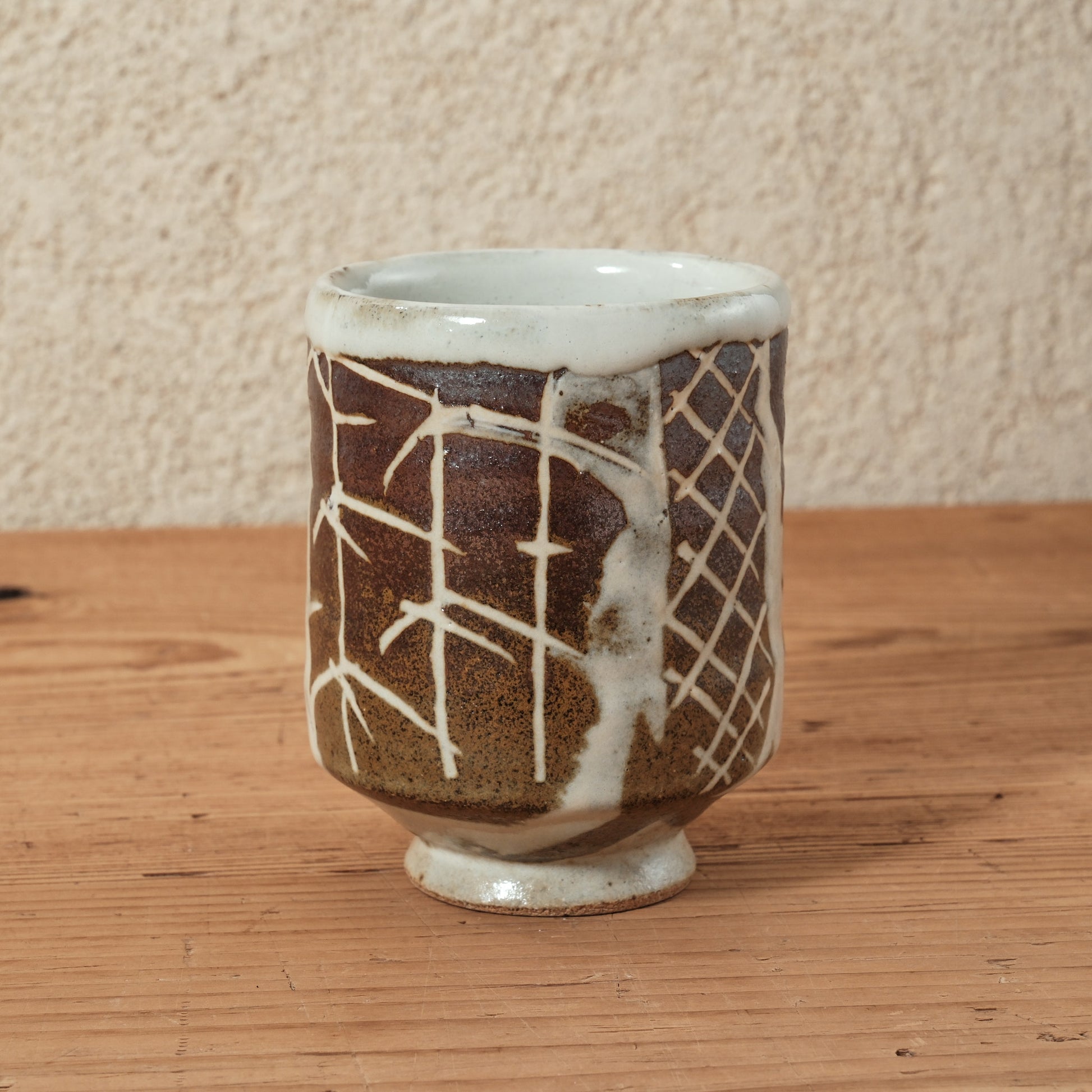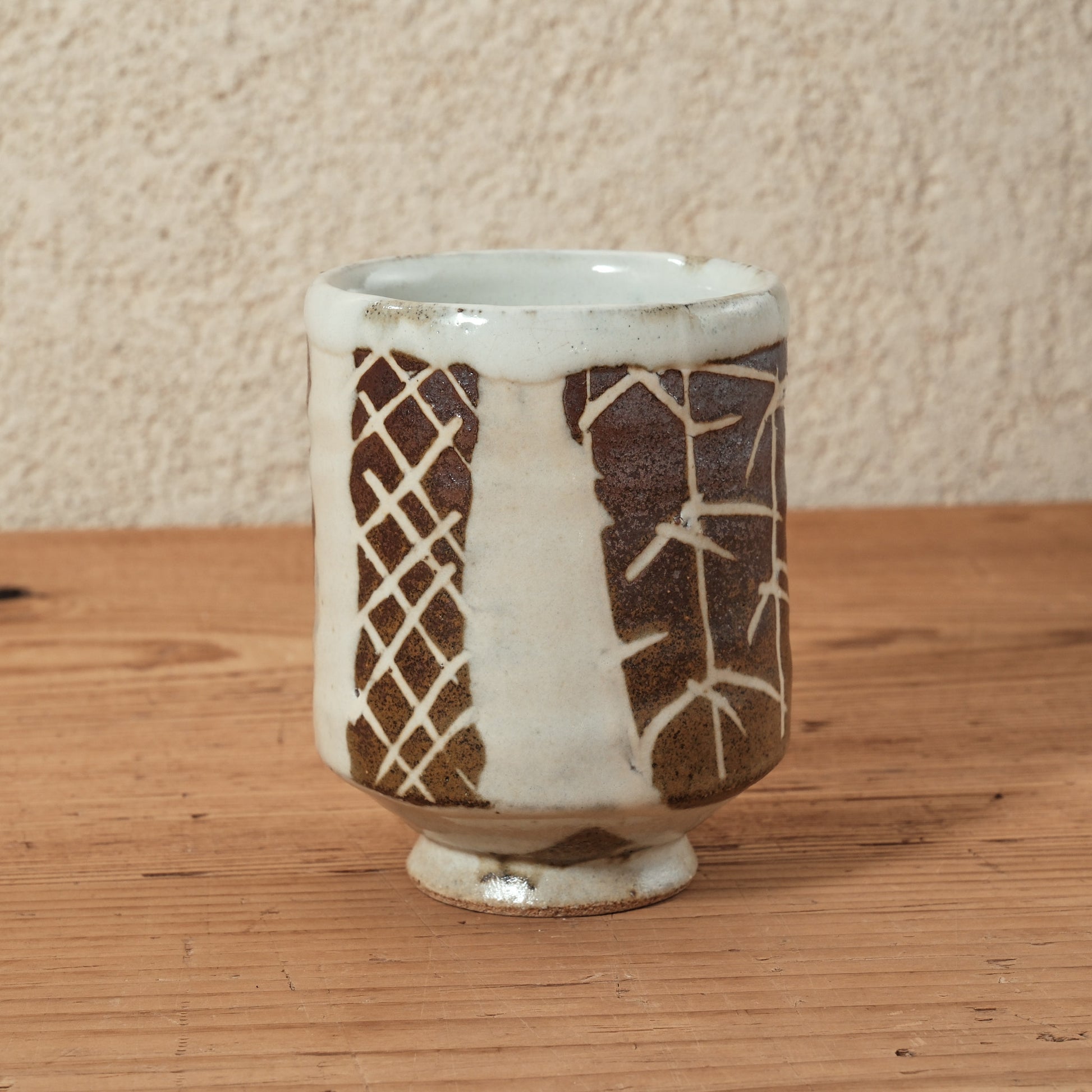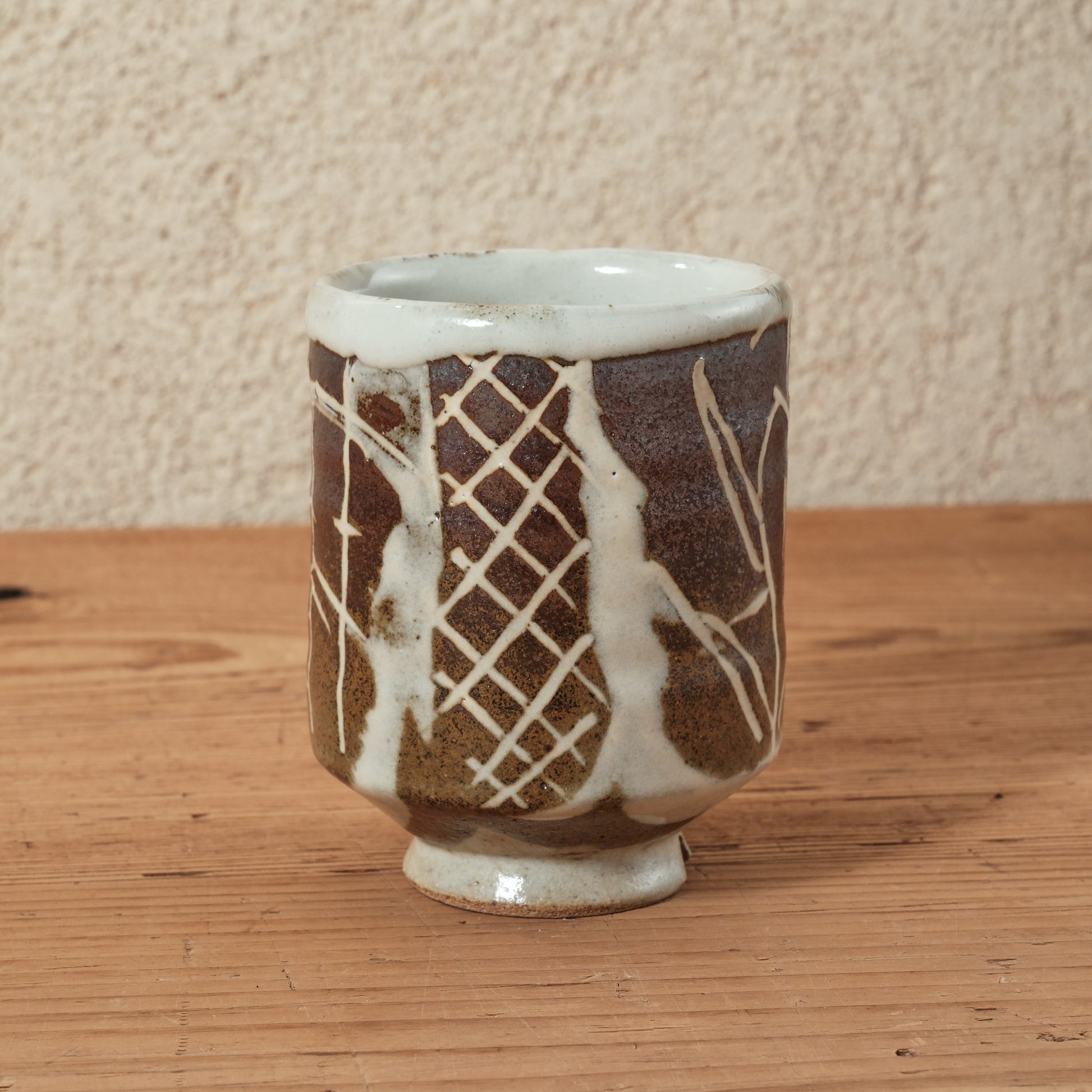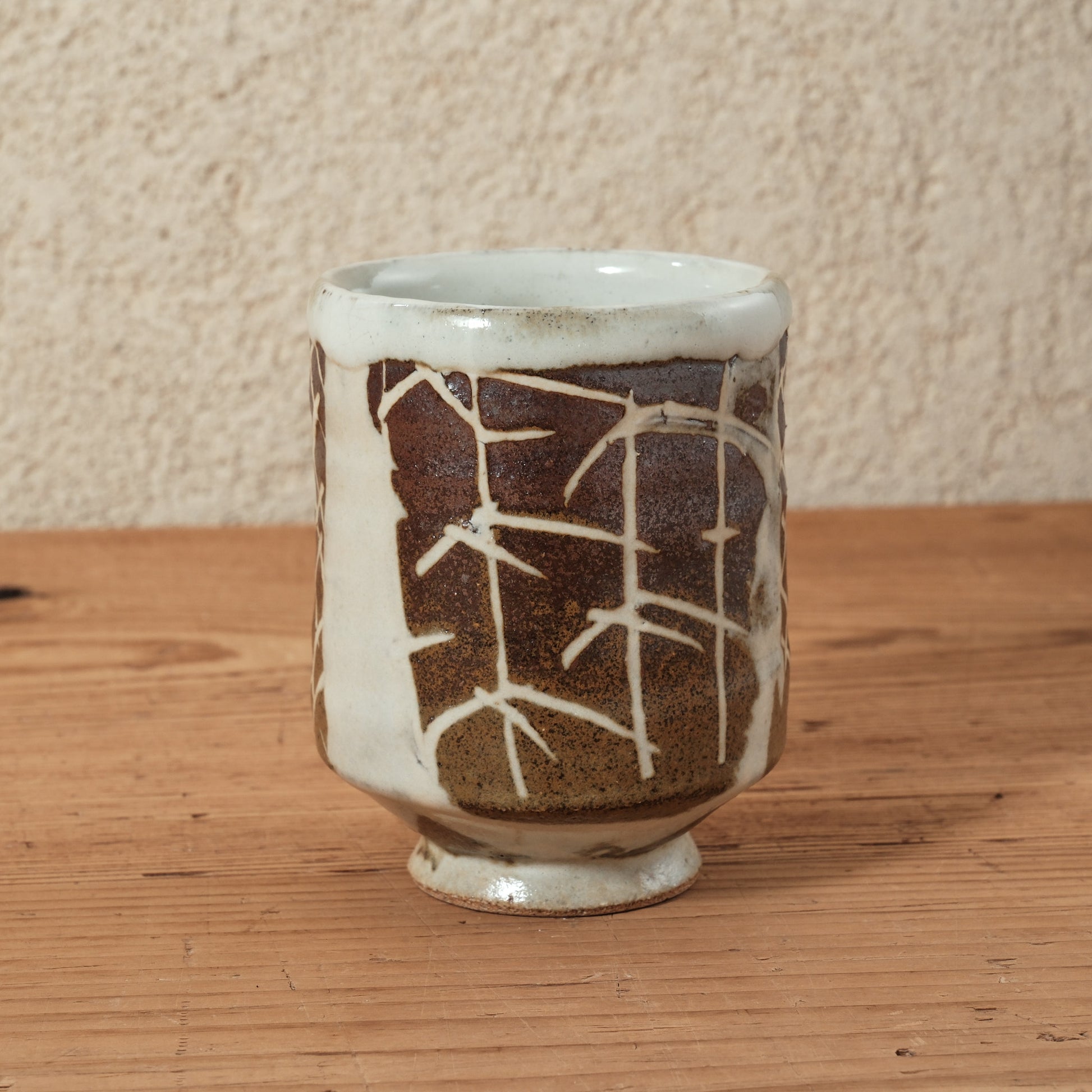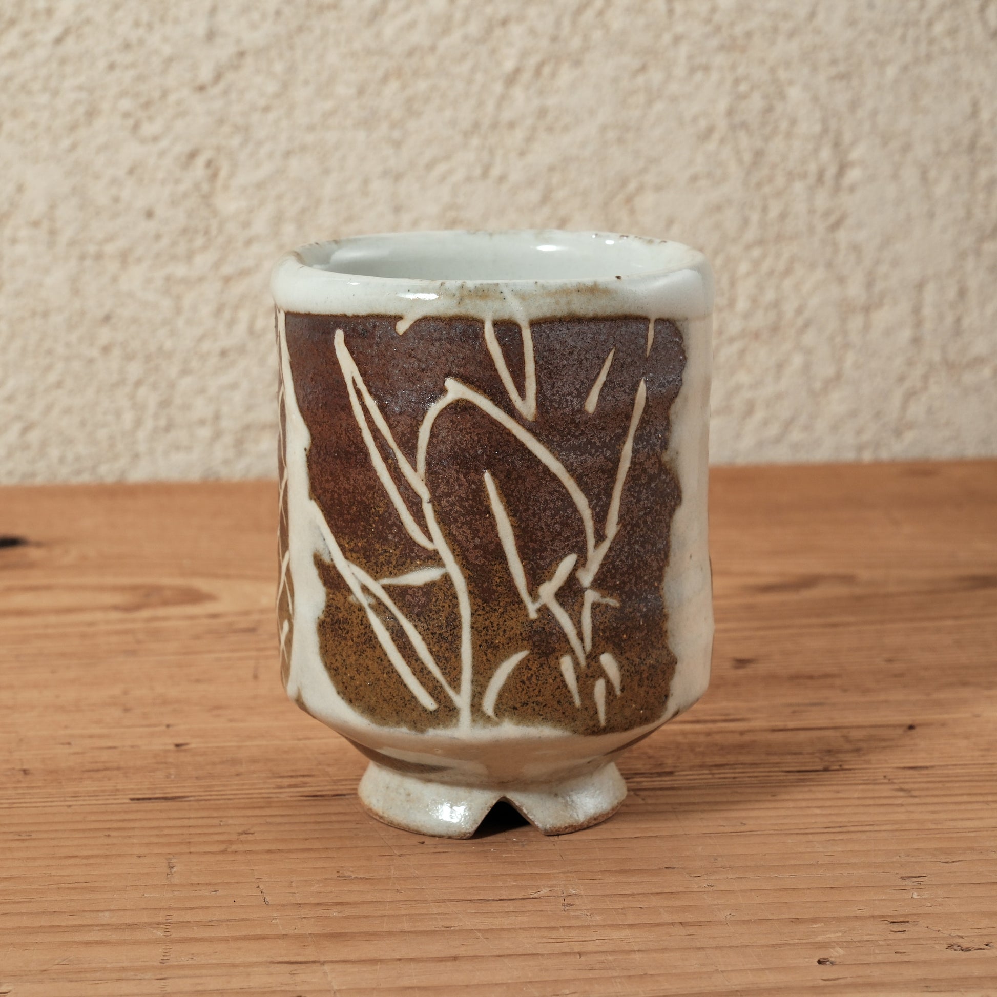 益子の陶芸家・松原直之さんによる、鉄砂絵の湯呑。(1点物)