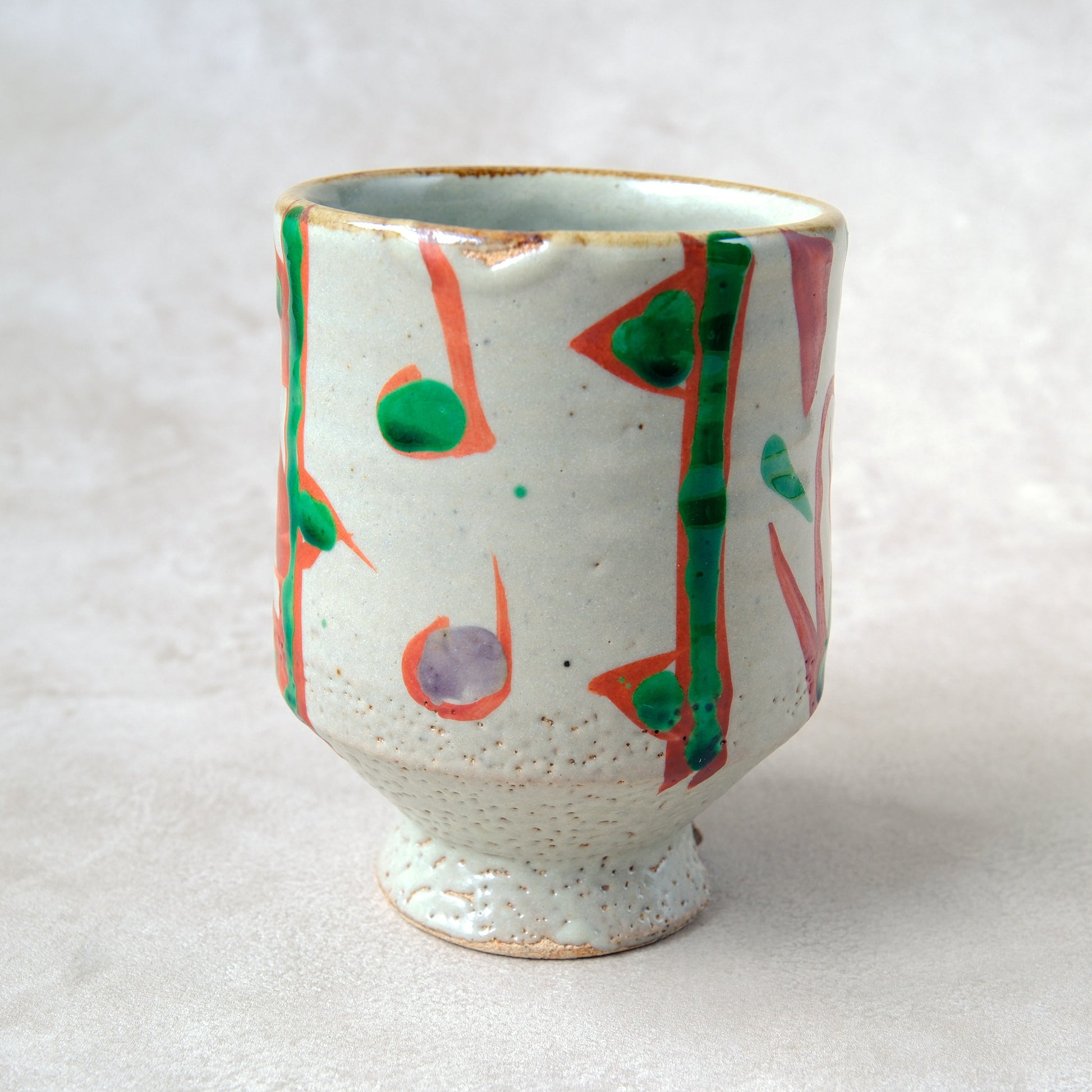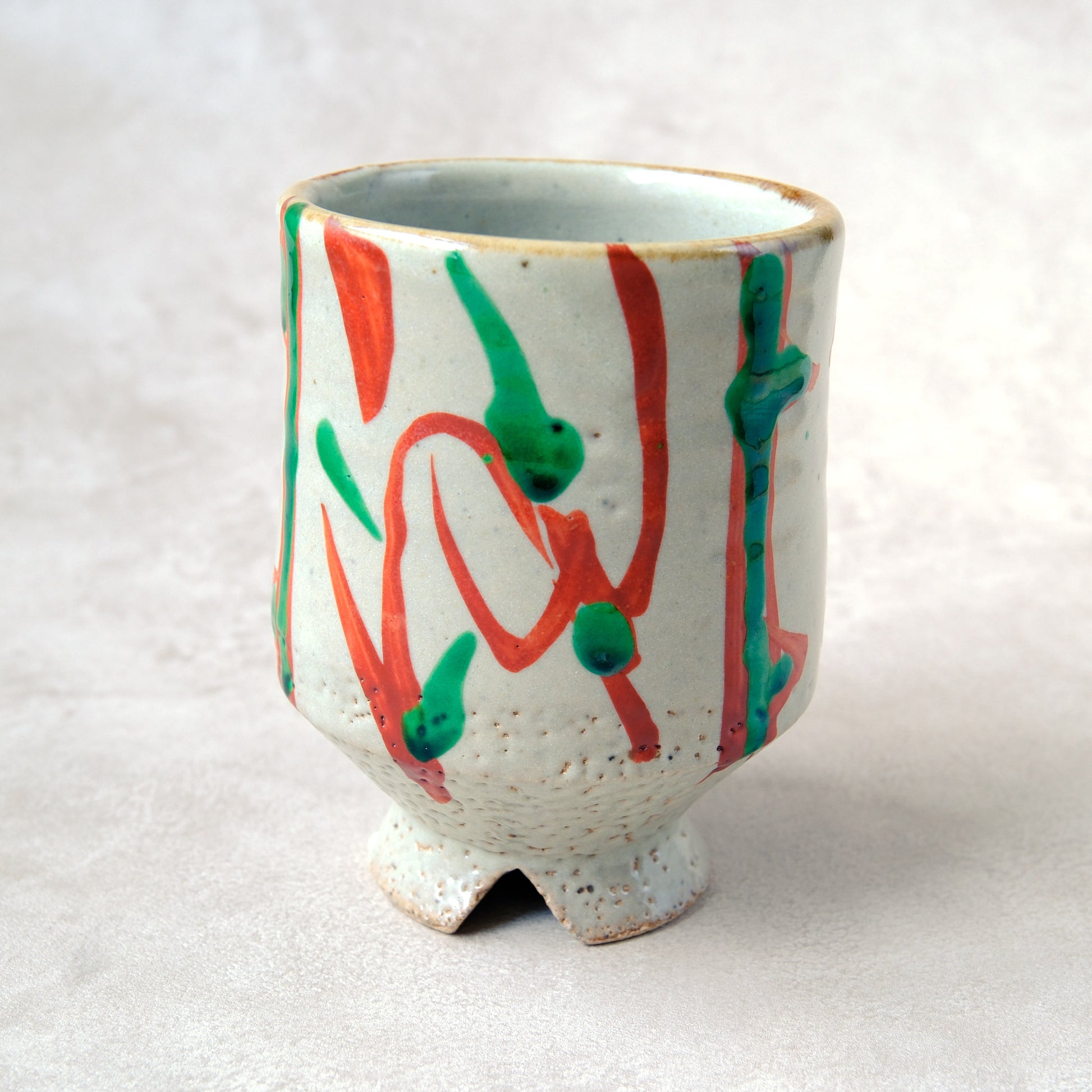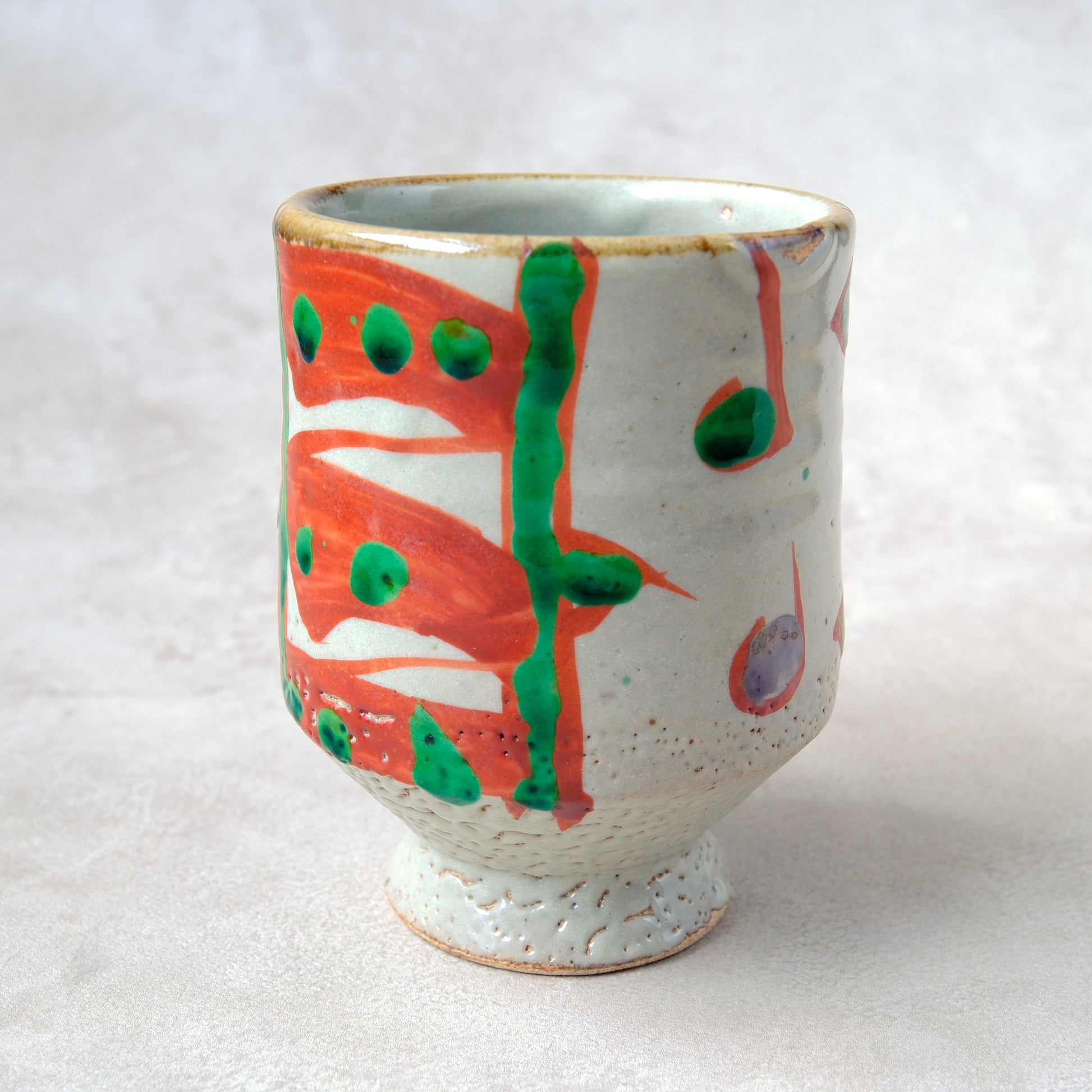 益子の陶芸家・松原直之さんによる、鉄絵と赤絵の湯呑。(1点物)